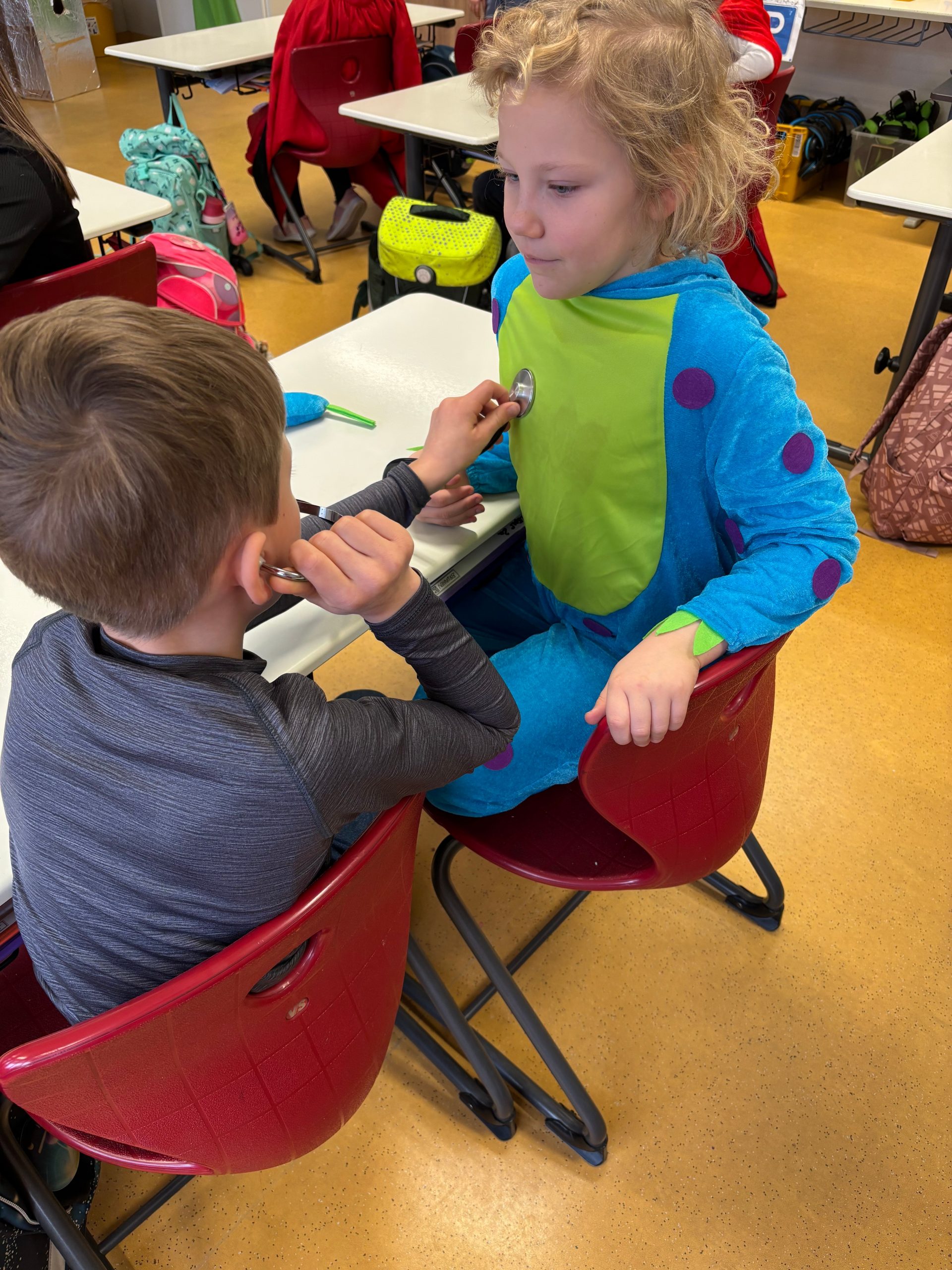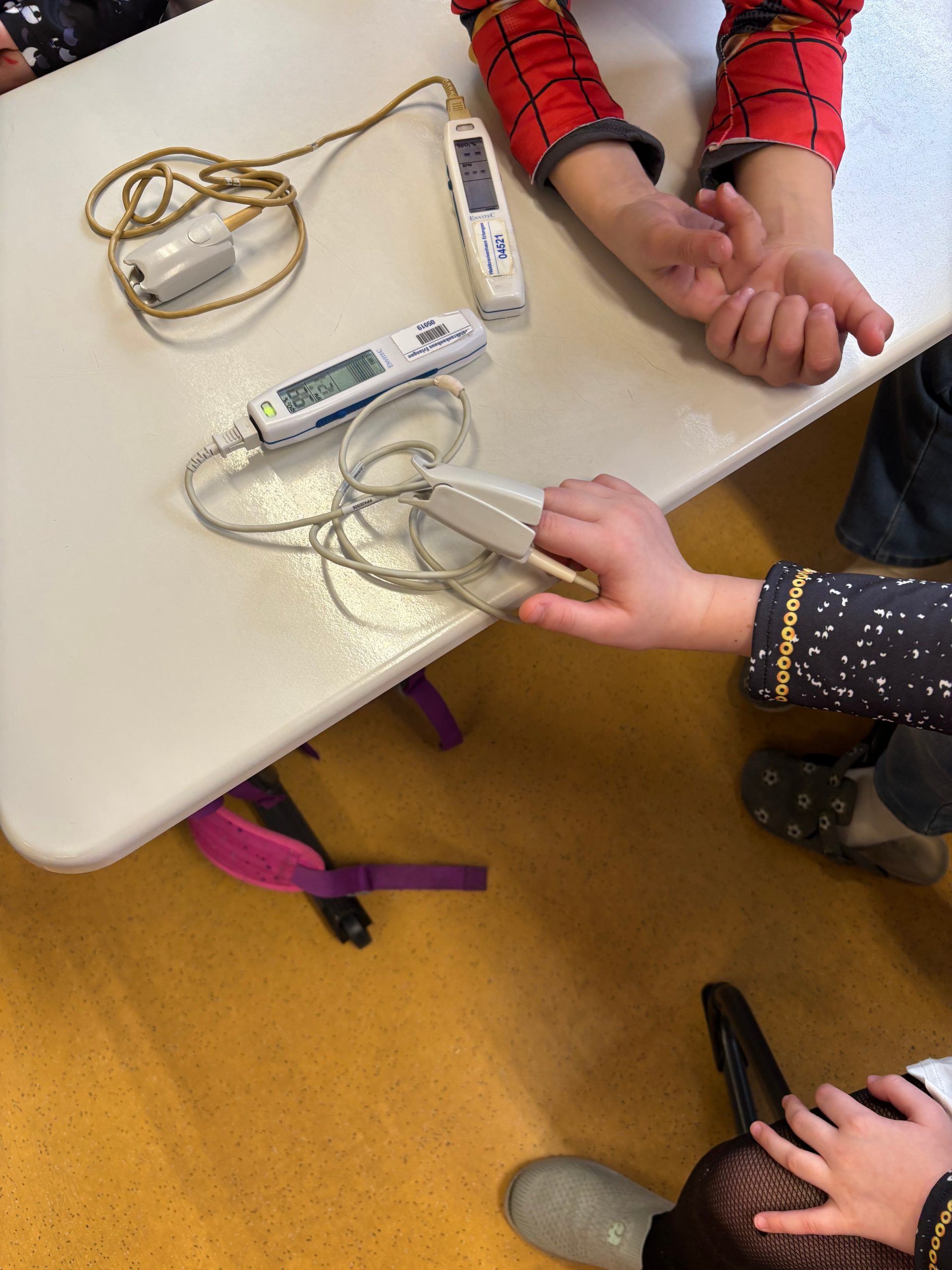 Ein echtes Highlight war, dass wir sogar selbst kleine Experimente machen durften. Mit einem Stethoskop konnten wir unseren Herzschlag hören – das war vielleicht aufregend! Außerdem wurde bei uns der Sauerstoffgehalt im Blut gemessen. So fühlten wir uns ein bisschen wie kleine Ärztinnen und Ärzte.